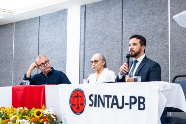 O presidente também parabenizou o SINTAJ pela organização do evento e ressaltou a importância da união entre entidades representativas. “Parabenizo o SINTAJ-PB pela excelência na organização deste congresso e a todos os participantes pela disposição em debater e buscar soluções conjuntas. Eventos como este fortalecem nossa categoria e são fundamentais para construirmos uma Justiça mais justa e eficiente”, afirmou.