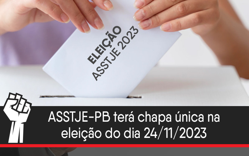 Terminado o prazo para inscrição de chapas para a eleição da nova Diretoria da ASSTJE-PB para o triênio 2023/2026 (31/10/2023), foi inscrita apenas uma chapa, denominada “Continuar para Avançar”, tendo como candidato a Presidente o atual Vice-presidente, José Waldez Lins Rabelo, e a Vice-presidente o atual Presidente, Altamir de Alencar Pimentel Filho (para ver o requerimento, basta clicar aqui).