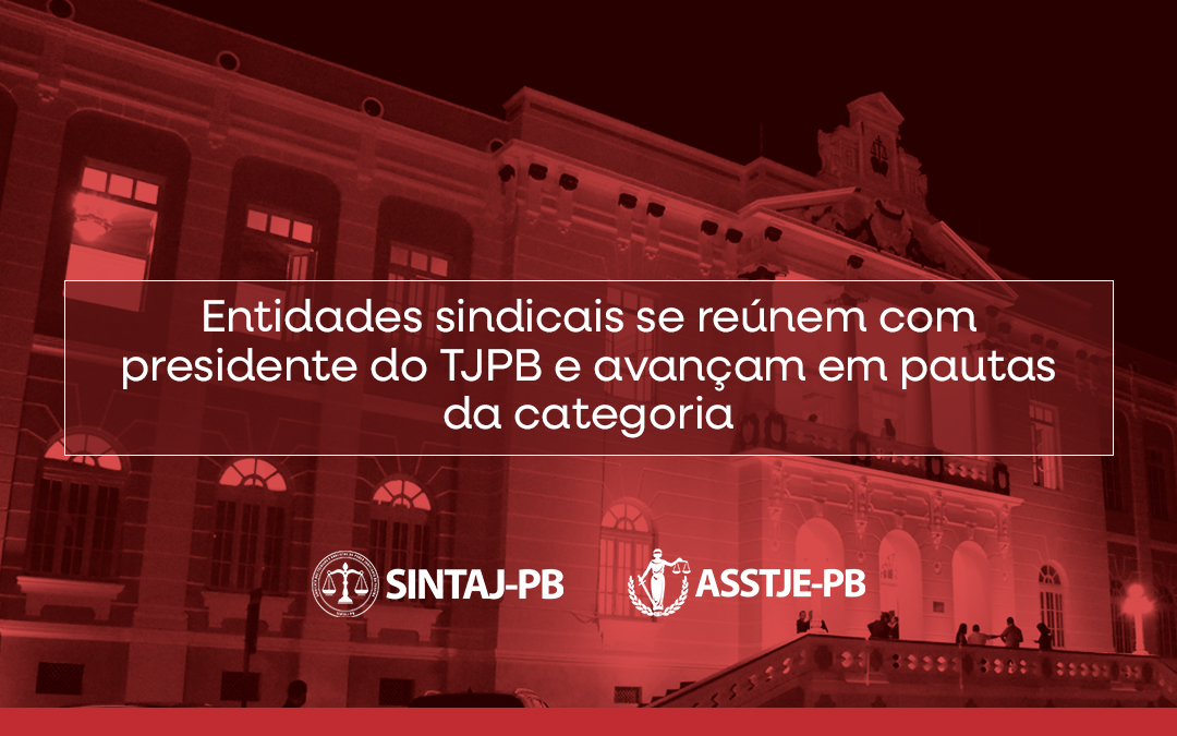 O SINTAJ-PB, a ASSTJE, junto a outras entidades representativas dos servidores, participaram de reunião com o Presidente do Tribunal de Justiça da Paraíba (TJPB), Desembargador Fred Coutinho, nesta quinta-feira (04). No encontro, foram debatidos temas relevantes para os servidores, como a compra de férias vencidas e não gozadas, os auxílios alimentação e saúde, a reforma do PCCR e as discussões sobre aumento remuneratório para 2026. Confira o resumo dos principais pontos tratados.