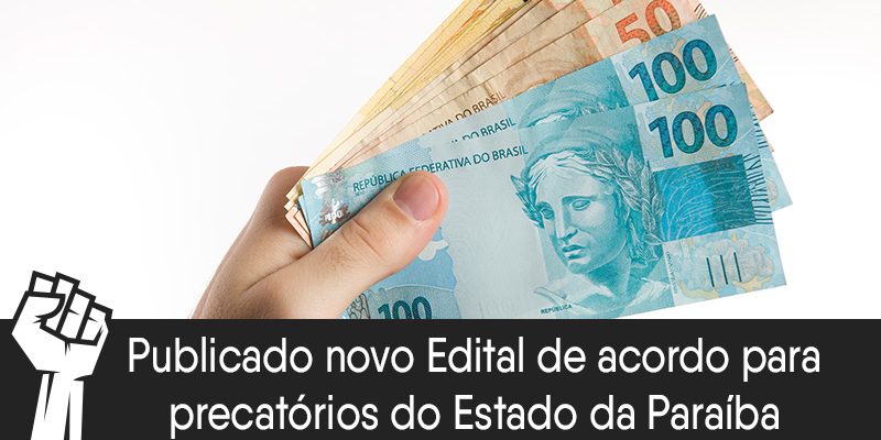 Foi publicado no Diário da Justiça do dia 01/11/2023 o Edital de Convocação nº 001/2023, através do qual se abriu novo prazo para requerimento de interessados em fazer acordo com o Estado da Paraíba para recebimento de precatórios com deságio de 40% (quarenta por cento).